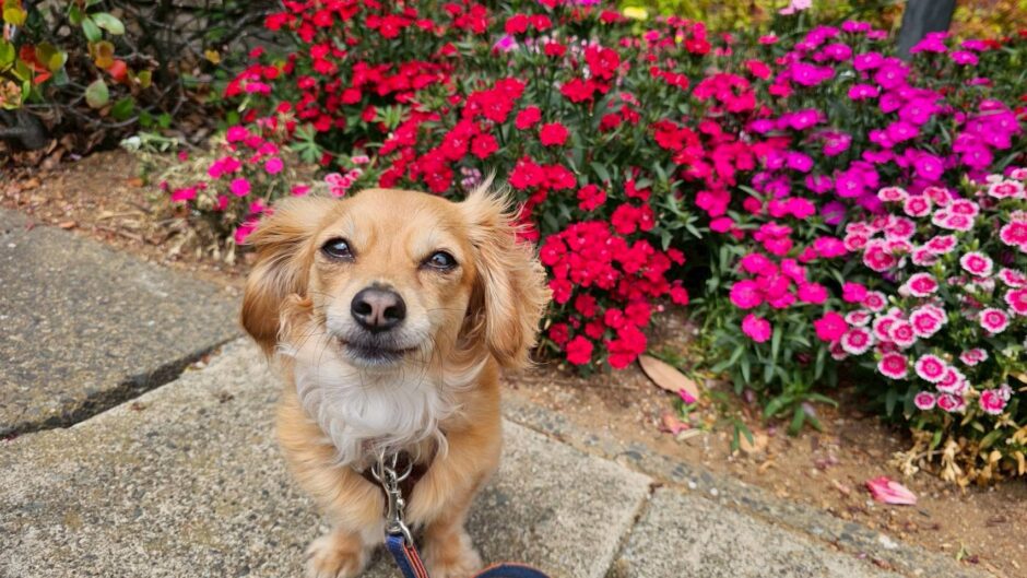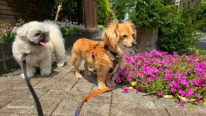 ジェニファーちゃん、クッキーくんと一緒にお散歩うれしそう♪