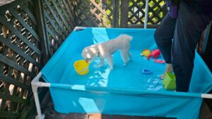 プールが苦手なマルちゃんも、短時間の練習で経験を積んでいきます😁