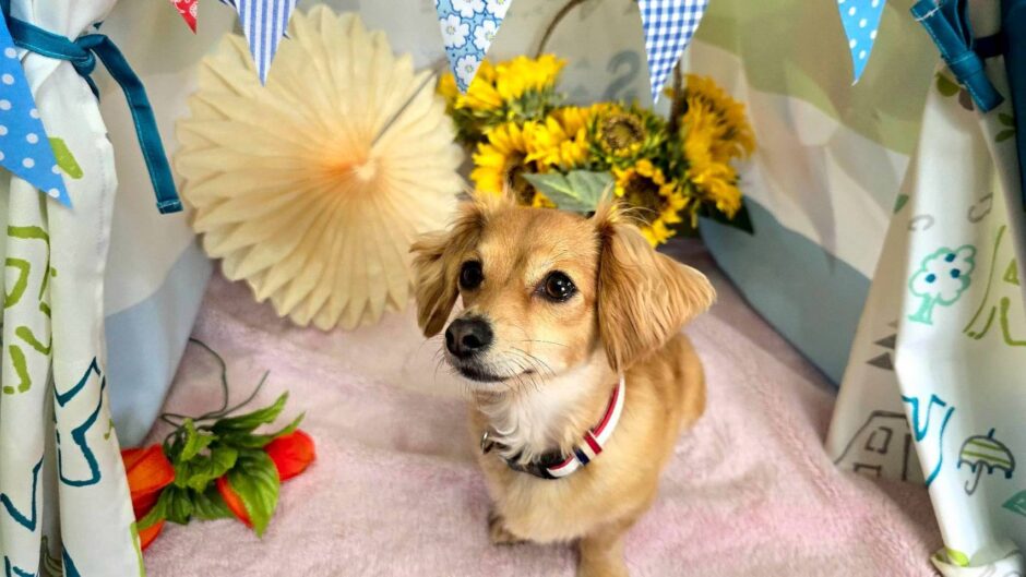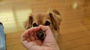 お試し入園のテオくんは、はじめての場所でもご褒美を食べてくれて他犬にもフレンドリー♪