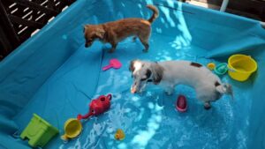 プール満喫したり、お庭で初めましてのテオくんとご挨拶したり♪
