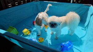 プールではふたりでアヒル救出大作戦🦆笑