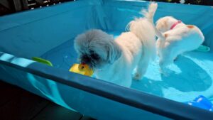 プールに、はじめましての子との挨拶、お勉強でおつかれのぽんちゃんは渋顔に🤣笑