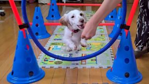 雨が読めず、お散歩は行けませんでしたがお庭や室内で楽しくお勉強したり、なんちゃってアジリティーで運動したり発散は十分できたと思います😊