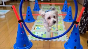 雨が読めず、お散歩は行けませんでしたが室内で楽しくお勉強したり、なんちゃってアジリティーで運動したり発散は十分できたと思います😊