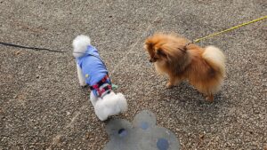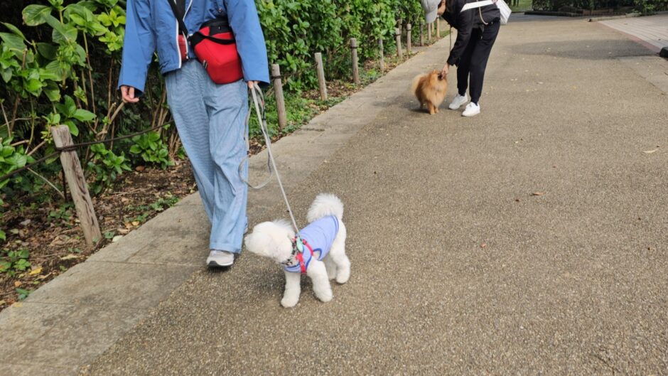 クッキーくんはお散歩会にも馴れていますが、こむぎくんとは初めまして。