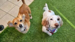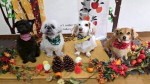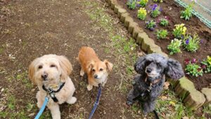 フレンドリーな幸芽ちゃんとぽんちゃん、教育係の?ジェニファーちゃん🤣、犬との接し方を学ぶヒナちゃん。