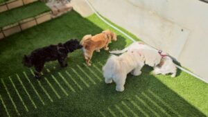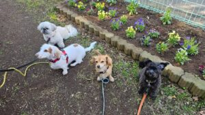 フレンドリーな幸芽ちゃんとぽんちゃん、教育係の?ジェニファーちゃん🤣、犬との接し方を学ぶヒナちゃん。