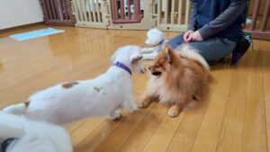 お試し入園にはポメラニアンの こむぎくんが登園してくれました♪