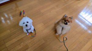 マルちゃんは横について歩く練習をもう一度初心に戻ってお勉強。