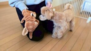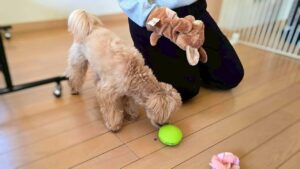 知育トイや歯固めで遊んでてもらいます🐶