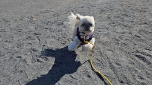 お散歩もみんなとは歩調が違いますが、一生懸命ついてきてくれてトレーニングもお外でキビキビと出来ました💮
