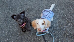お散歩前のアイコンタクト練習に自主参加の幸芽ちゃん🤣
