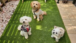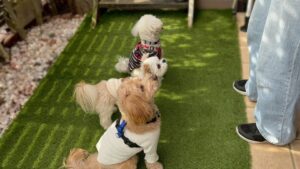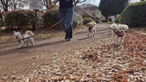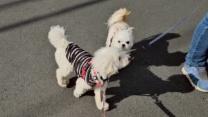 丁寧に社会化しながらみんなとのお散歩で修正していきます。