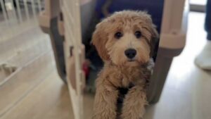 クレートに入る練習にチャレンジ (=゚ω゚)ノ