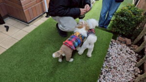 朝一番元気に登園してくれたクッキーくんは、グートのパパからご褒美もらって人馴れ😊