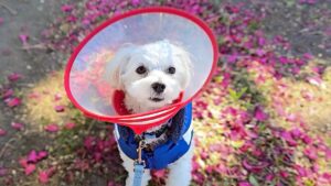 ルイくん、苦手なエリザベスカラーに馴らしながらみんなと一緒にお散歩したり落ち着くことをお勉強。