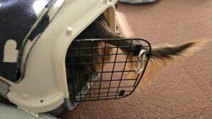 クレートに入るだけでも気持ちが落ち着きやすくなります。