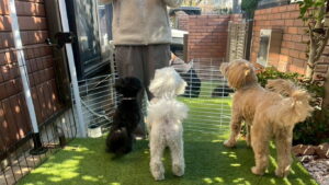 犬が苦手な子は安心出来るメンバーとサークルで分けたりしながら、少しずつフリータイム😊
