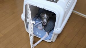 クレートに入ったら、扉が開いていても飛び出したりせず