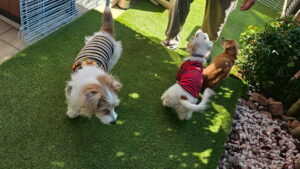 室内でなんちゃってアジリティやお勉強して楽しんだあとは、フリーでも過ごせたみんな😊