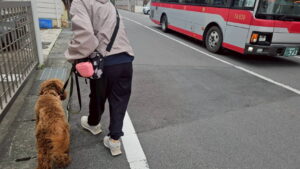 お散歩も体の大きなエレンくんは、引っ張らないようにしっかり横について歩くことが重要。