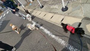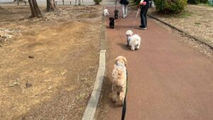 この日は晴れたり曇ったりでしたが、みんなと歩調を合わせて歩いたり、社会化のお勉強しながら楽しくお散歩🐾
