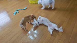 朝お散歩にいけていない分、いつもより興奮しやすいので名前の反応や呼び戻しは必須。