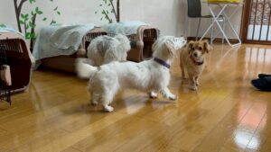犬達も小雨の時間を狙って、最低でも1日1回はお外で出して気分転換や発散はさせてあげたいですね。