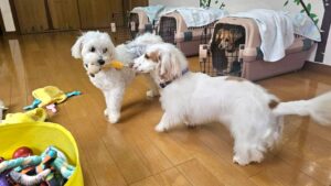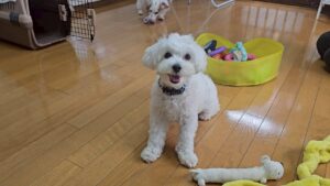 みんなとのトレーニングも、お家で一人ならきっとできると思うので、犬がいる幼稚園でも発揮できるように行動は体に染み込ませておきましょう♪